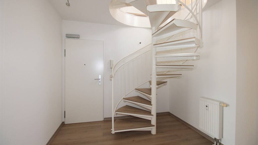 Die ca. 90 m² große Wohnung überzeugt durch ihre durchdachte Raumaufteilung und viel Platz zur individuellen Entfaltung. Zwei großzügige Balkone erweitern den Wohnraum ins Freie und laden zum Entspannen ein. Über eine Wendeltreppe erreicht man das lichtdurchflutete Studio im Spitzboden - ideal als Homeoffice, Gästezimmer oder Rückzugsort.