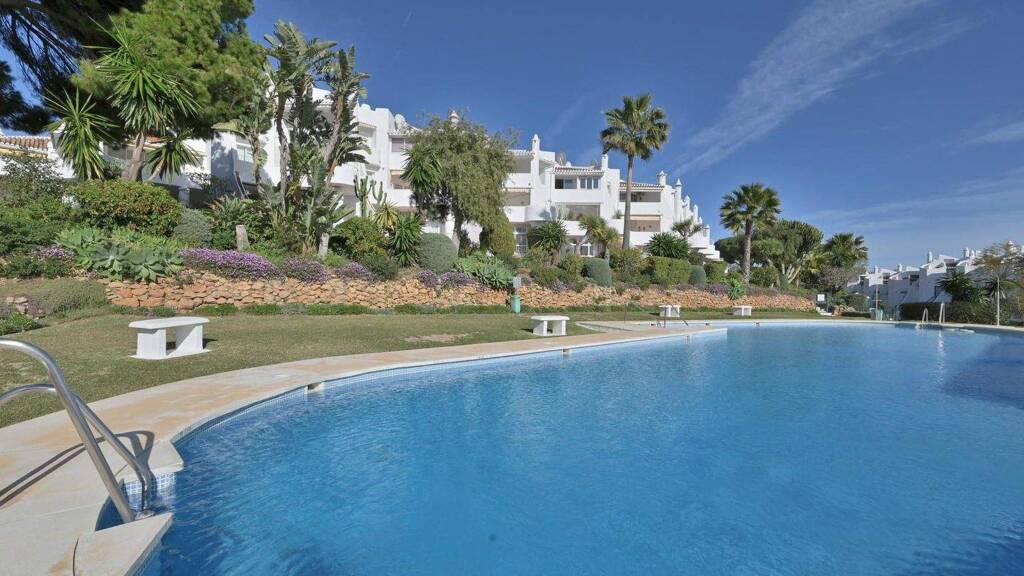Wunderschöne Erdgeschosswohnung in der sehr begehrten Urbanisation Jardines de Calahonda. Die Immobilie besteht aus zwei Schlafzimmern und zwei Badezimmern, darunter eine Elternsuite mit eigenem Bad und einer separaten Dusche für das Gästezimmer. Der Zugang zur Wohnung erfolgt über einen Hinterhof, der zu einem geschlossenen andalusischen Patio mit einem Abstellraum führt, ideal um die Morgensonne zu genießen. Dieser Bereich bietet auch einen direkten Zugang zum hinteren Schlafzimmer. Im Inneren finden Sie eine voll ausgestattete Küche sowie ein Wohnzimmer mit Essbereich auf zwei Ebenen. Der Wohnbereich verfügt über einen Kamin und Klimaanlage in zwei Räumen. Vom Wohnzimmer aus gelangt man auf eine sonnige Terrasse mit Südwest-Ausrichtung, die einen herrlichen Blick auf die gepflegten Gemeinschaftsgärten und den Pool bietet. Die Wohnung profitiert von einem großzügigen Gemeinschaftsparkplatz, der ideal neben dem Eingang gelegen ist. Sie ist perfekt gelegen, nur wenige Schritte von einer lokalen Bar entfernt, und nach nur 10 Minuten zu Fuß durch den Park finden Sie eine große Auswahl an Restaurants, Geschäften, Supermärkten und den Strand. Sie wird möbliert verkauft, gemäß Inventar.