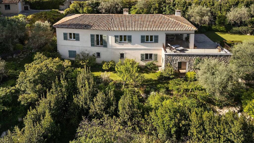 Unique property enjoying a magnificent panoramic view and located in the heart of the old village of Biot, comprising two villas in perfect condition set in the courtyard of a lush garden of 5,500 m2 with swimming pool.