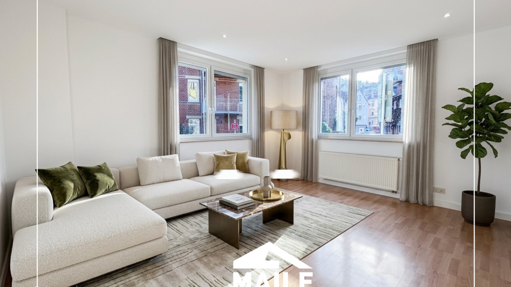 Nach Betreten der Wohnung gelangt man in einen Flur von welchem man alle Räume separat erreicht. Hierzu zählt der Wohnbereich und das Schlafzimmer, sowie ein Zimmer, welches als Büro, Ankleide oder Kinderzimmer genutzt werden kann. Darüber hinaus verfügt die Wohnung über eine Küche mit Einbauküche und ein frisch saniertes Tageslichtbadezimmer mit Dusche und WC.