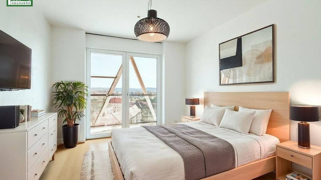 Mit barrierefreien Zugängen, einer hauseigenen Tiefgarage, begrünten Innenhof und intelligenten Lösungen für zeitgemäßes Wohnen. Die großzügigen Fensterfronten eröffnen einen atemberaubenden Blick über die Stadt.