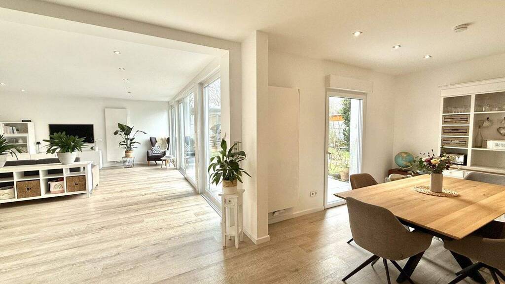 Große Fensterflächen sorgen für ein helles Wohngefühl, unterstützt durch die 3-fach-Isolierverglasung mit elektrischen Rollläden aus 2015. Helle Vinylböden unterstreichen das moderne und zugleich wohnliche Ambiente. Das aktuelle Esszimmer ist bereits baulich für die Nutzung als zweites Kinderzimmer vorbereitet (separate Tür und Lichtschalter); es müsste lediglich eine Trockenbauwand ergänzt werden.