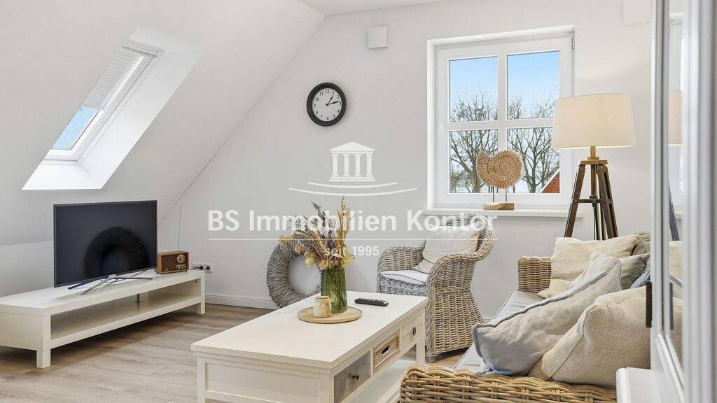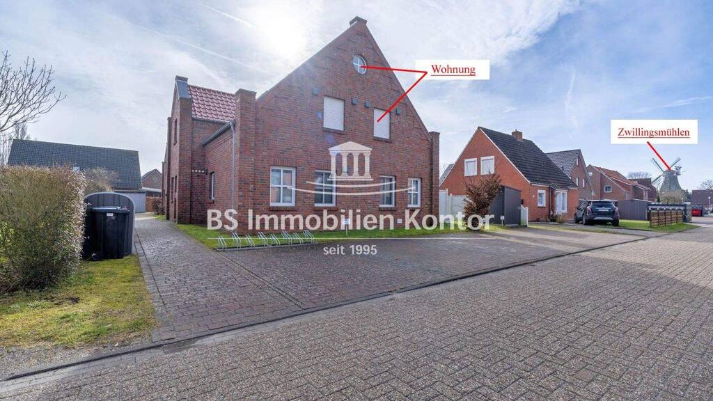 Diese moderne und lichtdurchflutete Maisonettewohnung befindet sich in einem gepflegten Mehrfamilienhaus aus dem Jahr 2016 und überzeugt durch ihren besonderen Grundriss über zwei Ebenen. Im Obergeschoss erwartet Sie ein großzügiger Wohn- und Essbereich mit offener Küche, der durch große Fensterflächen eine angenehme Wohnatmosphäre schafft. Von hier aus gelangen Sie in den Flurbereich, dem Schlafzimmer, sowie in das moderne Badezimmer. Über eine formschöne Treppe erreichen Sie das ausgebaute Dachgeschoss, das sich ideal als Schlafzimmer, Homeoffice oder Ankleidebereich nutzen lässt. Die Dachschrägen verleihen der Wohnung einen charmanten und gemütlichen Charakter. Den Greetsieler Hafen erreichen Sie fußläufig. Die gehobene Ausstattung dieser Wohnung erstreckt sich über: Kunststofffenster mit Sprossen/3-fach Verglasung u. Außenjalousien mit Elektroantrieb, Fußbodenheizung in jedem Raum, separate Be/u. Entlüftungsanlage, hochwertige weiße Innentüren, gute Sanitärausstattung, LED-Deckenstrahler im Wohn-/Essraum, Bad und Flur, hochwertige Treppengeländer im Treppenhaus aus Edelstahl und PKW-Einstellplatz. Die Wohnung verfügt über einen eigenen PKW-Einstellplatz und sep. Versorgungsanschlüssen (Wärmemengenzähler, Wasser, Strom). Beheizt wird die Wohnung durch eine Gas-Z.-Heizung. Diese seltene Gelegenheit überzeugt durch ein gelungenes Raumkonzept und einer schönen Wohnlage in Greetsiel (Nähe Zwillingsmühlen/Hafen).