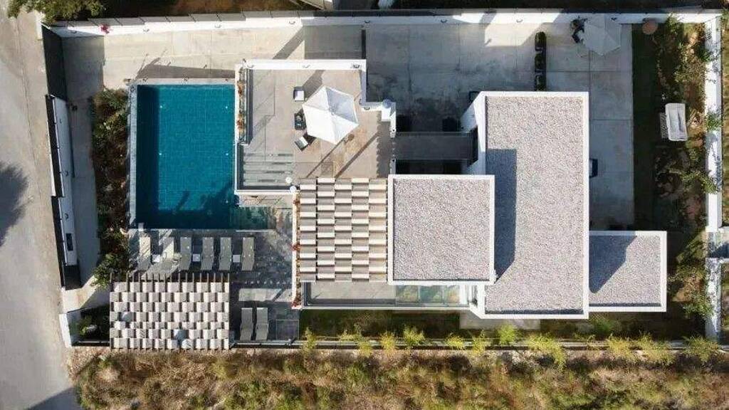 vier geräumige Schlafzimmer und vier Badezimmer, wodurch sie sowohl als dauerhafter Wohnsitz als auch als luxuriöses Ferienhaus ideal geeignet ist.Die Villa bietet helle und großzügige Wohnräume mit großen Glasflächen, die viel natürliches Licht hereinlassen und direkten Zugang zum Garten und zum Poolbereich bieten. Das Interieur zeichnet sich durch ein