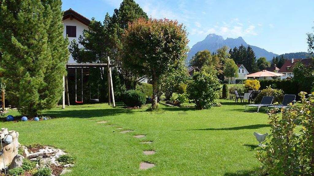 Das gepflegte Haus mit 1.088 qm Grund und einem sehr gepflegten Garten liegt im nördlichen Quartier von Füssen, am Fusse des Galgenbichls, ca 1 km von der Füssener Altstadt entfernt. Seit 28.07.2025 ist Füssen erstes Kneippheilbad und trägt dieses offizielle Prädikat. Schlafzimmer und Balkone bieten einen Blick auf Garten und den Füssener Hausberg Säuling. Wohnzimmer bieten einen Ausblick auf das Hohe Schloss zu Füssen. Vom Objekt aus haben Sie beste Ausgangsmöglichkeiten zur historischen Altstadt, zum Forggensee mit Schifffahrt und Musicaltheater. Füssen begeistert durch die Landschaft des Voralpenlandes mit zahlreichen Seen (11 Naturseen), der Nähe zu Tirol und durch die bekannten Märchenschlösser König Ludwigs II. Die Autobahn A7 und der Grenztunnel ist ca 3 km entfernt. Der Bahnhof und die Altstadt ca. 1 km. Füssen ist bekannt aus der Geschichte des Eishockeys und der Schlösser insbesondere Schloß Neuschwanstein. Das Haus wurde seit 1982 der Vermietung von Feriengästen neben der Eigennutzung unterstellt.