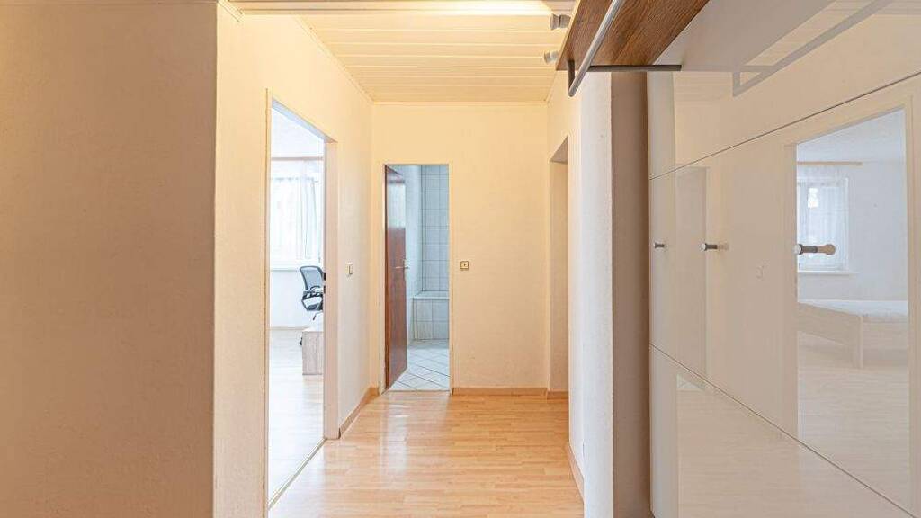 Diese wunderschöne, maßgeschneiderte 2-Zimmer-Wohnung in der ersten Etage vereint Charme, Geborgenheit und ein besonderes Wohngefühl auf ca. 60 m². Schon beim Eintreten spürt man die helle, positive Ausstrahlung der Räume. Der durchdachte Schnitt eröffnet vielfältige Gestaltungsmöglichkeiten und schenkt Raum für eigene Ideen und persönliche Akzente. Der großzügige Wohnbereich bildet das Herzstück der Wohnung - lichtdurchflutet und einladend mit direktem Zugang zum Balkon. Von hier aus eröffnet sich der Blick in einen außergewöhnlich großen, naturverbundenen Garten, der mit seiner Ruhe und Weite ein Gefühl von Freiheit vermittelt und zum Innehalten einlädt. Das geräumige Schlafzimmer verspricht erholsame Nächte und harmoniert mit dem stilvollen Laminatboden, der ebenso im Wohnbereich und im Flur für eine warme Atmosphäre sorgt. Das im Jahr 2011 modernisierte Badezimmer ist vollständig gefliest und bietet mit seiner Badewanne einen Ort der Entspannung - ein kleines privates Spa für den Alltag. Die voll ausgestattete Einbauküche schafft beste Voraussetzungen für kreatives Kochen und genussvolle Momente. Das gepflegte Mehrfamilienhaus aus dem Jahr 1968 umfasst lediglich neun Wohneinheiten auf drei Etagen und wird fortlaufend modernisiert. Die sehr gute Wärmedämmung sorgt für ein angenehmes Wohnklima und hilft dabei, Nebenkosten spürbar zu reduzieren. Hinter dem Haus erwartet Sie ein märchenhafter Garten, der Natur und Ruhe in perfekter Harmonie vereint. Abgerundet wird dieses besondere Angebot durch eine außergewöhnlich große Tiefgarage, die nur mit einem weiteren Mieter geteilt wird und selbst Platz für zwei Fahrzeuge bietet. Eine Wohnung voller Licht, Wärme und positiver Energie - ein Ort zum Ankommen und Wohlfühlen.