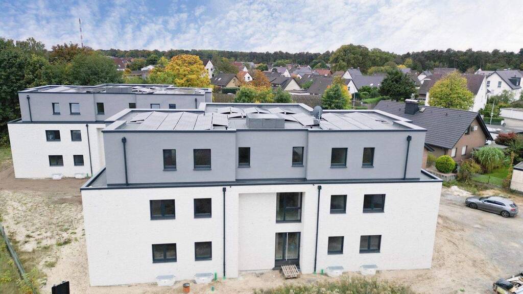 barrierefreie Neubau-Eigentumswohnungen in einem 9-Parteienhaus in Schloß Holte 2-3 Zimmerwohnungen mit Wohnflächen zwischen ca. 57 m² und ca. 81 m² Abstellraum in den Wohnungen KfW40-Energieeffzienzstandard, Erdwärmepumpe, PV-Anlage, angenehme Fußbodenheizung bequemer Aufzug inkl. Stellplatz Vollkeller