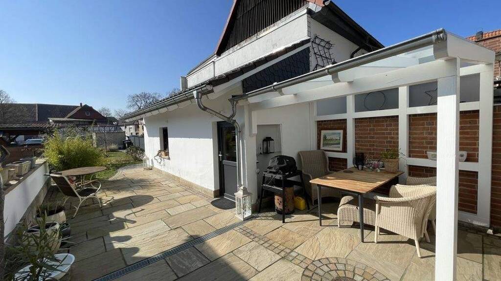 Das komplett sanierte Reihenmittelhaus mit gehobener Ausstattung, neu angelegtem kleinen Garten, Terrassenüberdachung aus Glas, separatem Abstellraum und Garage befindet sich in zentraler Innenstadtlage von Einbeck.
