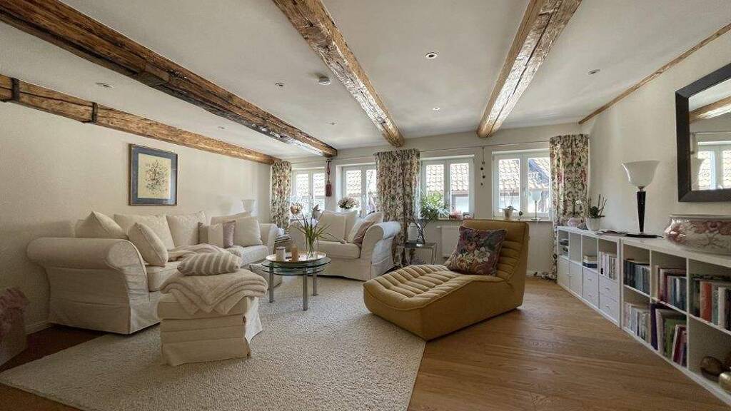 Alle Holz-Balken im Haus wurden freigelegt, bearbeitet und sind sichtbar.