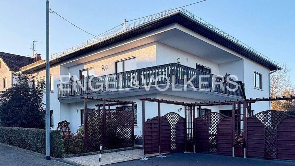 Die Details im Überblick: - massive Bauweise - funktionaler Zuschnitt, Unterteilung in zwei Wohneinheiten - Wohnung OG ca. 136 m², modernisiert 2015 - Wohnung EG ca. 116 m², renovierungsbedürftig - Gas-Zentralheizung 2023 - Solarthermie (Warmwasserunterstützung) 2010 - 2-fach-verglaste Holzfenster mit Rollläden 1973 - Kunstschiefer-Dacheindeckung 1973 - Dämmung OG-Decke und Außenwand innen 1973 weitere Details: - gepflegter Allgemeinzustand - moderne Einbauküche mit Kochinsel OG - Dusch-/Wannenbad OG 2015 - Dusch-/Wannenbad EG 1978 - Gäste-WC - Bodenbelag: Vinyl, Fliesen, Marmor - großer Balkon - neu angelegter Freisitz / Terrassenbereich - 2x Einzelgaragen mit Abstellraum - weitere Außenstellplätze - Drainage erneuert 2015 Angaben gem. GEG: Energiebedarfsausweis, Endenergiebedarf 190,70 kWh/(m²a), Energieträger Gas, Baujahr 1973, Energieeffizienzklasse F, CO2-Ausstoß 46,40 kg/m²