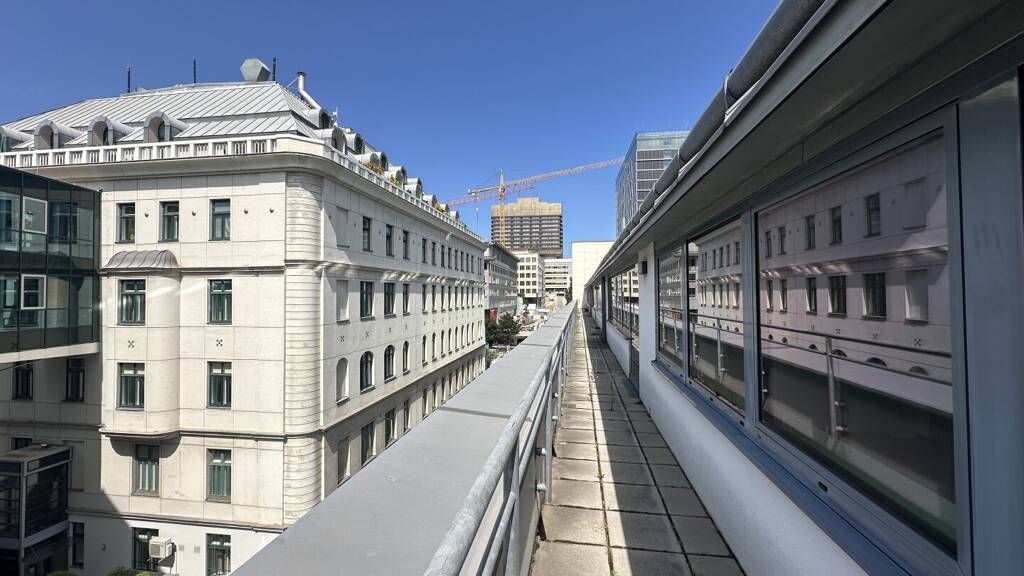 Das Gebäude vereint somit hochwertige Infrastruktur für wissenschaftliche Einrichtungen mit den Anforderungen moderner Arbeitswelten. Die zur Verfügung stehende Fläche im 4. Obergeschoss zeichnet sich durch eine funktionale Raumaufteilung und einen klar strukturierten Grundriss aus. Die Fläche bietet einen einladenden Empfangsbereich, verschieden große Büro- und Besprechungsräume, eine Teeküche sowie getrennte WC-Anlagen. Durch die flexible Raumaufteilung lässt sich die Einheit gut an unterschiedliche Nutzungsbedürfnisse anpassen. Ein besonderes Highlight sind die vorhandenen Terrassenflächen, die zusätzlichen Freiraum schaffen und sich ideal für Pausen oder Besprechungen eignen.