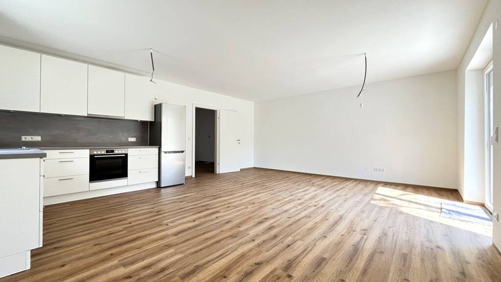 Die im Erdgeschoss gelegene Wohnung wird zentral über einen Vorraum betreten. Das großzügige Wohn- Esszimmer ist hell, luftig und verfügt über einen Zugang zur einladenden nach Süden ausgerichteten Terrasse. Die neue Küche inklusive Elektro-Geräte ist modern ausgestattet und lässt keine Wünsche offen. Natürlich sollte man auch das Schlafzimmer, das kuschelig und gemütlich eingerichtet werden kann, nicht außer Acht lassen. Im Vorraum, Wohnküche und dem Schlafzimmer, wurde hochwertiger Vinylboden verlegt. Ebenso wurden im Badezimmer moderne Boden- und Wandfliesen verbaut.