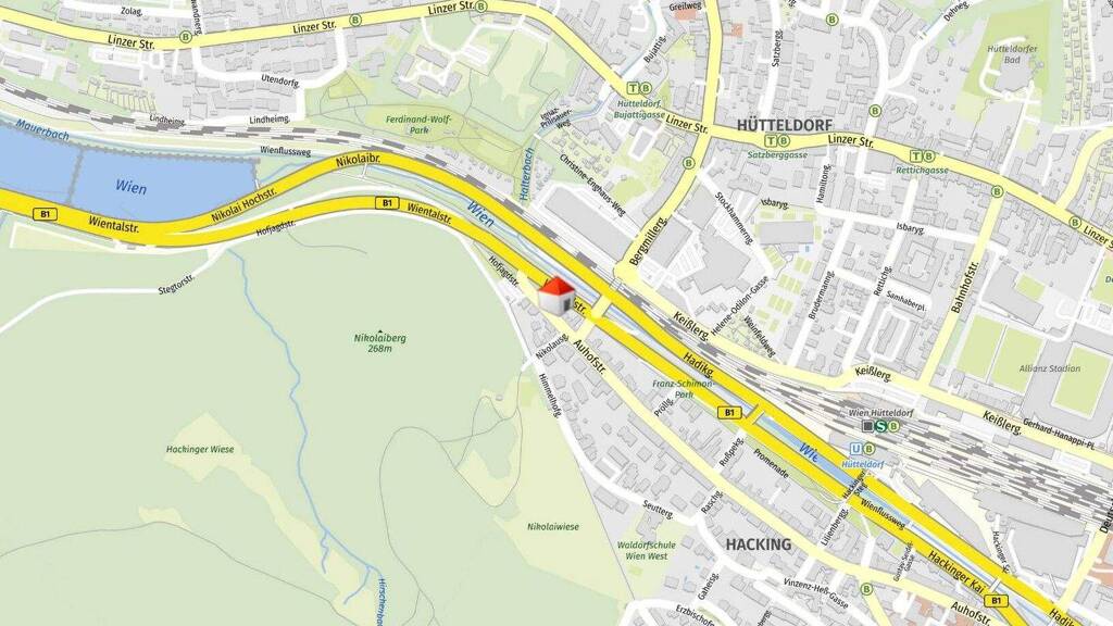 Die öffentliche Anbindung ist durch den fußläufig erreichbaren Bahnhof Hütteldorf gegeben.
