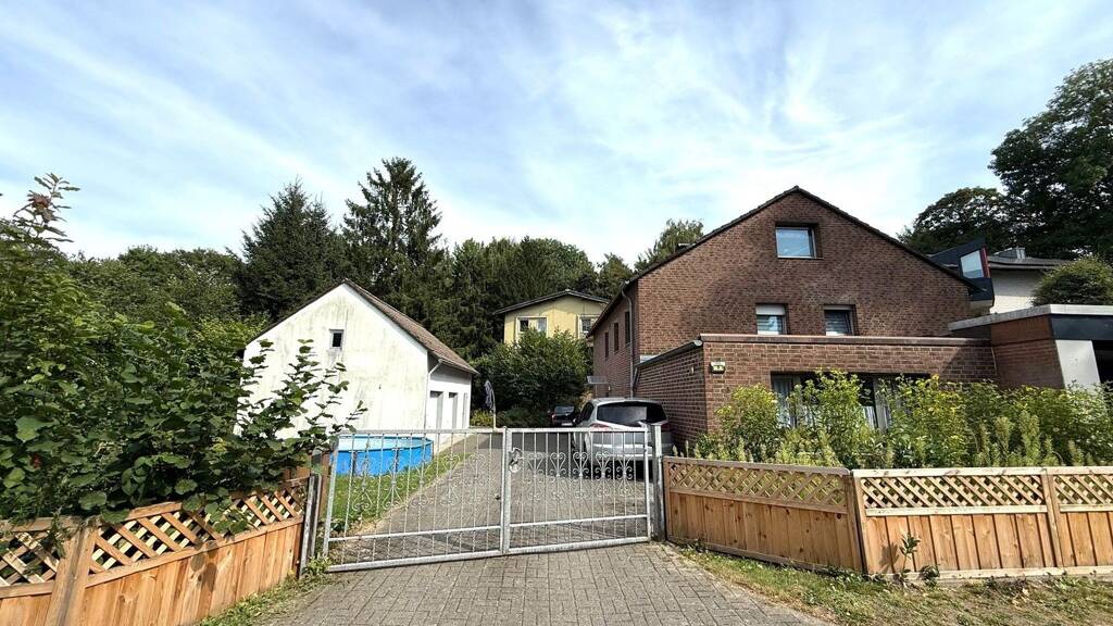 Dieses verklinkerte, freistehende EFH mit zwei abgeschlossenen Wohneinheiten steht ab sofort zum Verkauf und befindet sich in einer ruhigen Wohnsiedlung mit ausreichenden Parkplatzmöglichkeiten auf dem eigenen Grundstück in Form von einem Garagengebäude für zwei Pkw´s sowie zwei Stellplätzen. Das Objekt aus dem Jahr 1958 überzeugt durch seine "Idyllische" Lage in einer Sackgasse mit ausschließlich Einfamilienhausbebauung. Zur Immobilie zählen neben acht einladenden Zimmern nicht nur ein großes Kellergeschoss, sondern auch zwei Badezimmer mit Wanne, ein ausgebautes Dachgeschoss, ein großzügiger gepflasterter Hof mit viel Platz für die ganze Familie, sowie einem Gartenanteil durch den der Bach die kleine Düssel am Grundstücksrand verläuft.