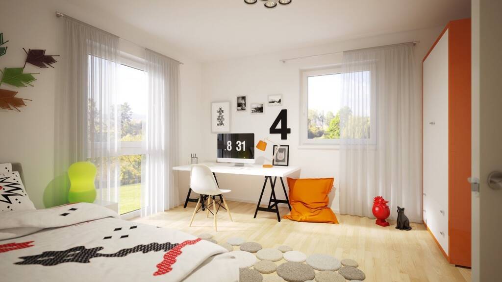 Kochen und Essen auf über 23 m² und in direktem Anschluss das Wohnzimmer mit weiteren 20 m² schaffen Platz für die ganze Familie. Zwei geräumige Kinderzimmer, Familienbad, Elternschlafzimmer mit integrierter Ankleide finden im Obergeschoss ihren Platz.