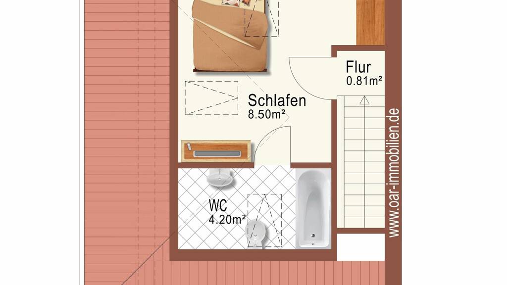 Im zweiten Obergeschoss und im Dachgeschoss des Hauses befindet sich die zum Verkauf stehende ca. 65,44 m² große, modern und hochwertig eingerichtete 3-Zimmer-Maisonette-Wohnung mit Südseitenbalkon.