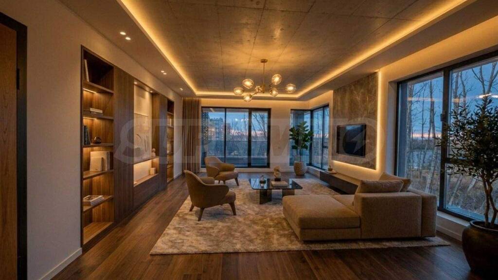 Wir präsentieren Ihnen eine elegante Dreizimmerwohnung der besonderen Art: Vom Wohnzimmer aus genießen Sie einen ungestörten Blick ins Grüne: Stille, Bäume und das Wasser der Ruderbasis im Bild, dazu Schlafzimmer mit Südausrichtung und Panoramablick auf das Rhodopengebirge.