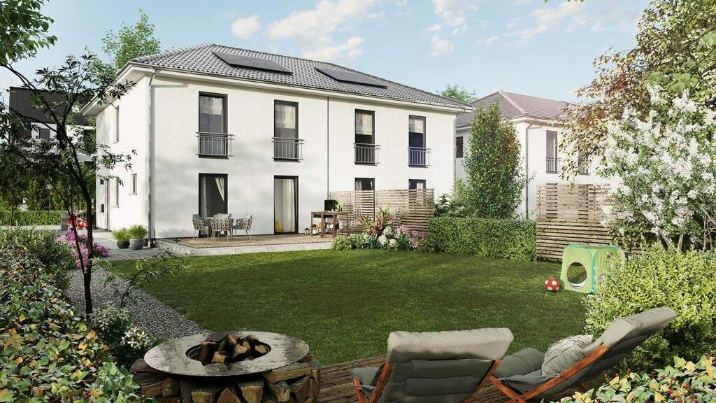 Das Doppelhaus hat insgesamt fünf Zimmer für die ganze Familie zu bieten. Im Erdgeschoss finden Sie den großzügigen Wohnbereich mit Home-Office, Gäste-WC und Hauswirtschaftsraum vor. Während das Obergeschoss Platz für zwei Kinderzimmer sowie ein Badezimmer und Schlafzimmer mit Ankleide bietet.