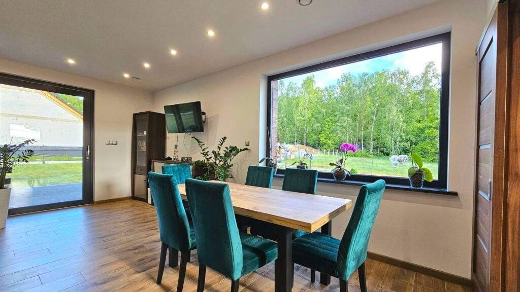 Ein freistehendes Einfamilienhaus mit einer Fläche von 178 m² und integrierter Garage. Die Immobilie befindet sich auf einem geschmackvoll angelegten Grundstück von 1329 m². Wenn Sie von einem geräumigen Haus für Ihre Familie träumen, bieten wir Ihnen eine charmante Immobilie, ideal für Menschen, die Wohnkomfort ebenso schätzen wie die Nähe zur Natur.
