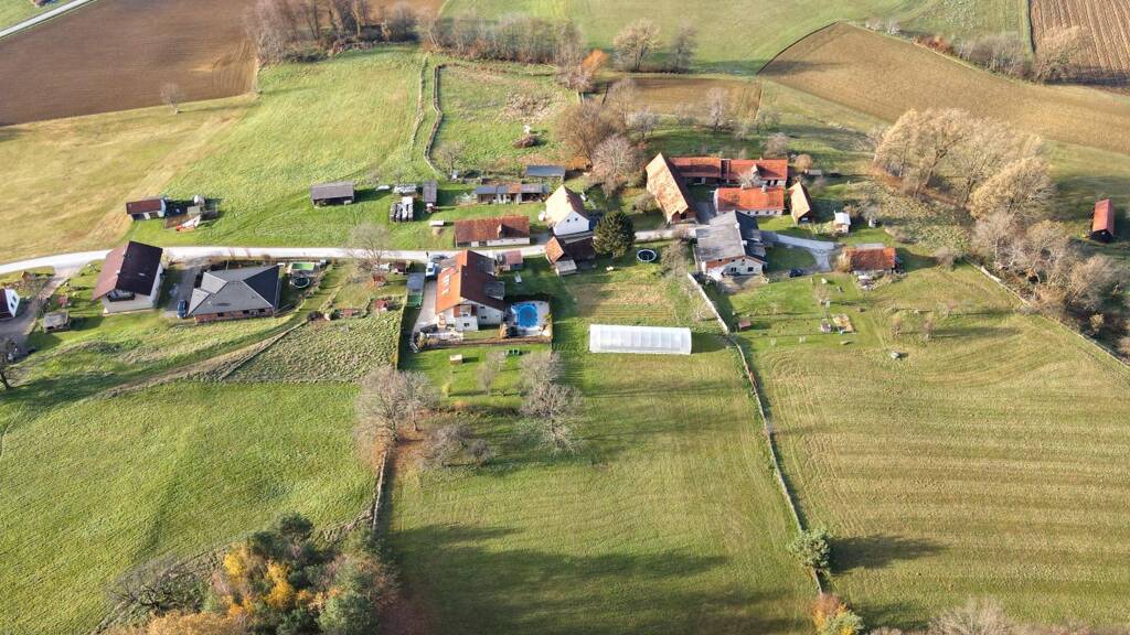 . ca. 7.512 m² rund ums Wohnhaus, Stall und Nebengebäude, davon ca. 2.100 m² Bauland und ca. 5.412 m² Grünland.