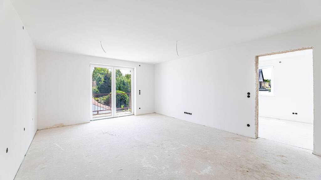Das Schlafzimmer mit ca. 17,5 m² sowie das gut geschnittene Kinder- oder Arbeitszimmer (ca. 14,7 m²) bieten ausreichend Platz und vielseitige Nutzungsmöglichkeiten. Der zentrale Flur (ca. 6,15 m²) verbindet alle Räume harmonisch miteinander. Das modern geflieste Badezimmer (ca. 8,9 m²) ist mit einer ebenerdigen Dusche, hochwertigen Sanitärobjekten sowie einem Waschmaschinenanschluss ausgestattet. Der hochwertige Innenausbau erlaubt aktuell noch die Berücksichtigung von Sonderwünschen bei der Wahl von Bodenbelägen und Badezimmerausstattung - so kann die Wohnung ganz nach Ihren Vorstellungen finalisiert werden.