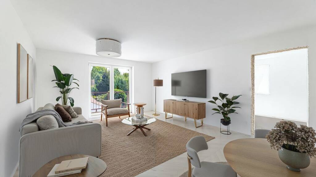 Mit einer Gesamtwohnfläche von ca. 74 m² bietet die Wohnung ein großzügiges und offenes Wohn- und Esszimmer mit Zugang zum sonnigen Süd-Ost-Balkon - ein idealer Ort zum Entspannen und Genießen. Die bodentiefen Fenster sorgen für eine helle und freundliche Atmosphäre und schaffen ein angenehmes Wohnklima.