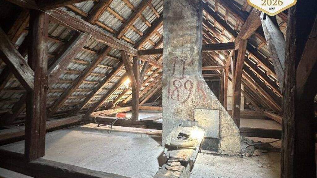 Die Wohnfläche im Obergeschoß gliedert sich in zwei Einheiten: 1. Wohnung: bezugsfertig 2. Wohnung: renovierungsbedürftig