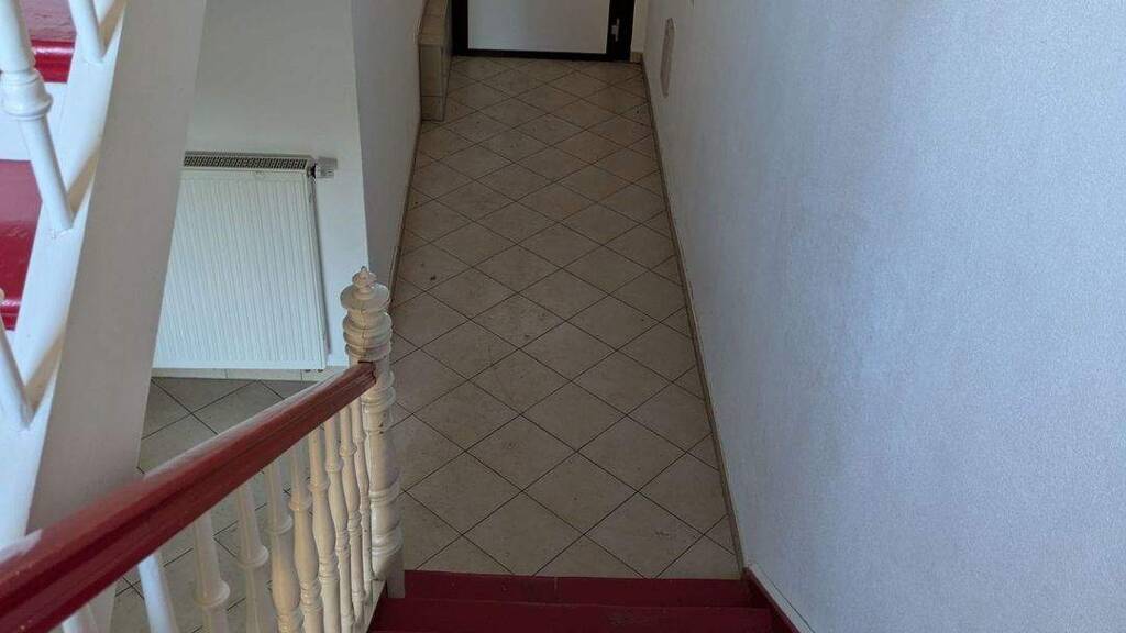 Vom Eingang an der Hauptstraße gelangt man als erstes in den hellen Flur mit Durchgang zum Garten, der Treppe zum 1.Obergeschoß sowie über einen kleine , abgeschlossenen Flur in eine große Wohnküche und eine geräumiges Bad mit Wanne und Anschluss für Waschgeräte.