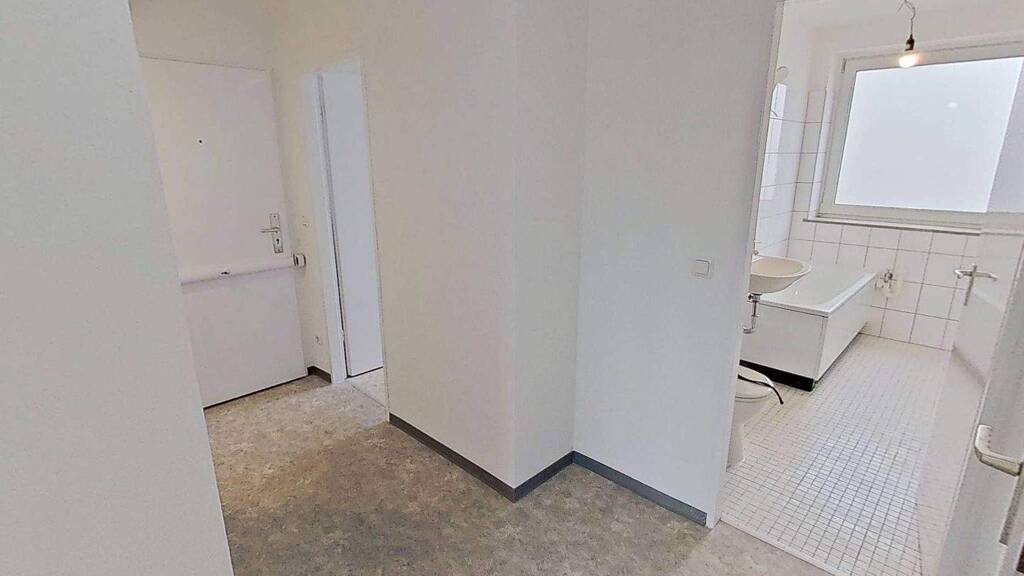 In der Küche erwarten Sie die passenden Anschlüsse für Ihre persönliche Einbauküche. Das Badezimmer ist weiß gefliest und mit einer Badewanne ausgestattet. Ein Abstellraum im Eingangsbereich sorgt für zusätzlichen Stauraum und hilft, Ordnung zu halten.