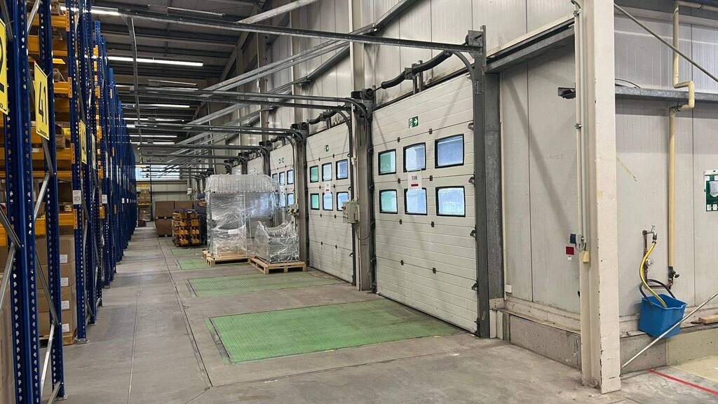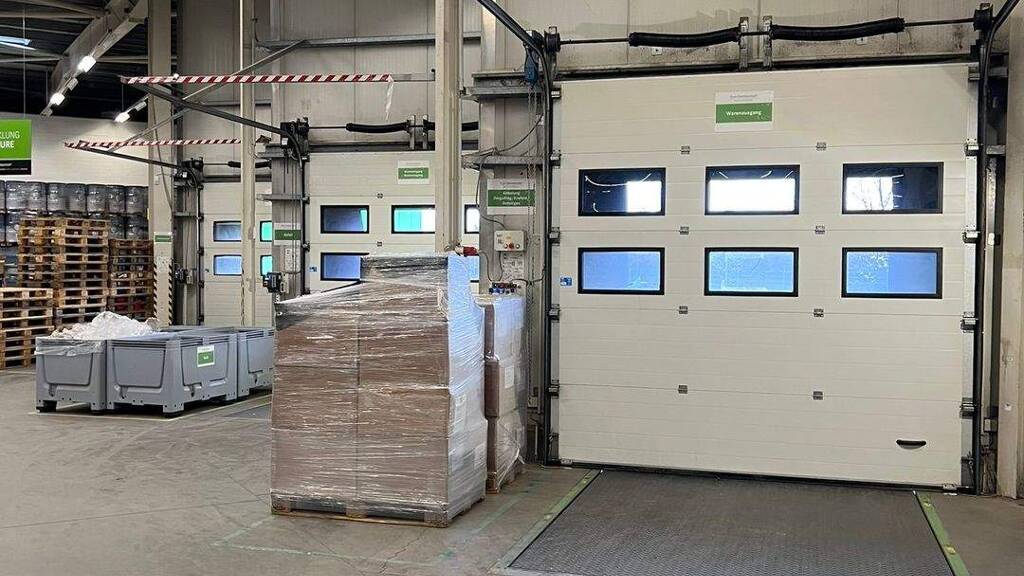Optional können vorhandene Ausstattungen des aktuellen Mieters - wie Hochregale, Gabelstapler sowie dazugehörige mobile Ladestationen - übernommen werden. Ergänzend stehen im Vorderhaus des Gebäudes ca. 680 m² Büroflächen zur Anmietung zur Verfügung, die bei Bedarf mit den Hallenschiffen verbunden werden können.