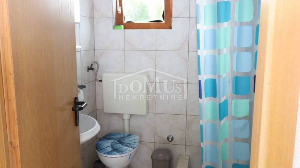 Jezera auf der Insel Murter, in erster Reihe zum Meer, im Zentrum des Ortes mit Blick auf das Meer und den Yachthafen. Eine Etage eines kleineren Hauses / eine Wohnung mit einer Nutzfläche von 62,12 m² befindet sich im ersten Stock und verfügt über einen dazugehörigen Hof. Die Wohnung besteht aus einer Außentreppe, einem Podest, einem offenen Wohnbereich mit Küche und Esszimmer, einem Badezimmer, zwei Schlafzimmern sowie einer 22,50 m² großen Terrasse, die einen ungehinderten Blick auf das Meer, den Yachthafen und den gesamten Ort bietet. Zur Wohnung gehört ein Gartenanteil von 39 m², der Platz für zwei Fahrzeuge bietet. Die Wohnung ist sofort bezugsfertig, komplett möbliert und die Möbel sind im Immobilienpreis inbegriffen.