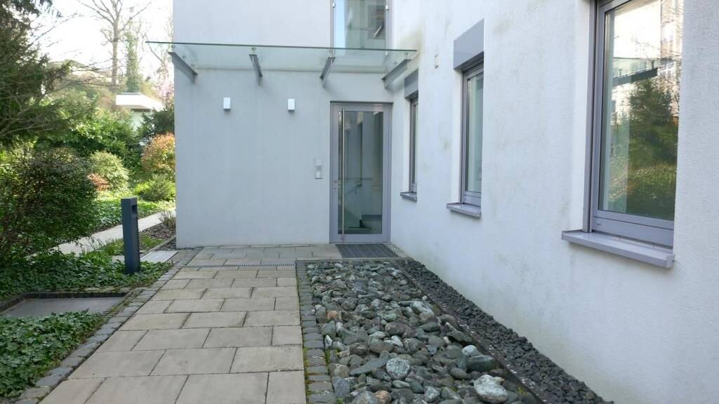 In Wiesbadens allerfeinster Lage, im Komponistenviertel, wurde im Jahr 2007 eine sehr aufwändige und hochwertige Villa mit drei Wohnungen errichtet. Zu vermieten ist die Wohnung im Erdgeschoss und Gartengeschoss mit zwei separaten Terrassen, viel Grün und wunderbarem Blick. Schon der Eingangsbereich mit schmiedeisernem Tor bietet sehr gepflegtes Ambiente und Sicherheit. Ebenerdig vom Eingangsbereich befinden sich das sonnige Wohn- Esszimmer, Schlafzimmer, ein schickes Bad und Gäste-WC. Ganz wunderbar ist die überdachte Terrasse mit Zugang zum Garten. Der untere Bereich der Wohnung liegt dank der Hanglage im Gartengeschoss: zwei schöne Räume, ein Bad und ein Hauswirtschaftsraum bieten Ihnen Platz zum Arbeiten und für Ihre Gäste. Der große Garten steht Ihnen allein zur Verfügung. Eine Tiefgarage mit zwei Stellplätzen ist vorhanden, hier fahren Sie sehr bequem zu Ihren Stellplätzen und mit dem Aufzug zu Ihrer Wohnung. Es handelt sich um ein sehr ruhiges Haus, für das wir Ruhe liebende Mieter suchen, die an einem langfristigen Mietverhältnis interessiert sind.