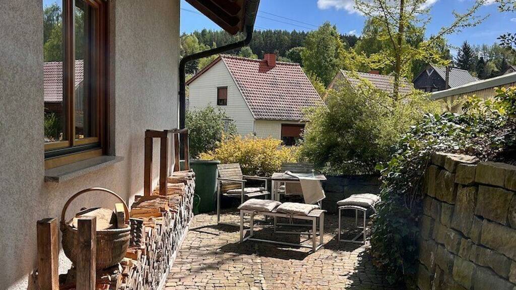 In einer ruhigen Wohnlage präsentieren wir Ihnen dieses stilvolle Einfamilienhaus, das keine Wünsche offenlässt. Die Immobilie besticht durch ihre hochwertige Architektur, lichtdurchflutete Räume und moderne Ausstattung. Der großzügige Wohn-/Essbereich mit offenem Kamin, die maßgeschneiderte Küche und der gepflegte Garten bieten ein attraktives Wohnerlebnis.großzügiges Wohnzimmer mit Zugang zur Terrasse/Gartenoffener Essbereich zum Wohnzimmerseparate Küche mit SpeisekammerGarderobe / Eingangsbereich mit Einbauschränken4 Zimmer - hell, mit ausreichend Staurau als Schlafzimmer, Kinder- oder Gästezimmer nutzbar2 Bäder mit Badewanne/Dusche1 Abstellraum / Hauswirtschaftsraum1 Arbeitszimmer - ruhig gelegen, ideal für konzentriertes Arbeiten2 gemütliche Terrassen