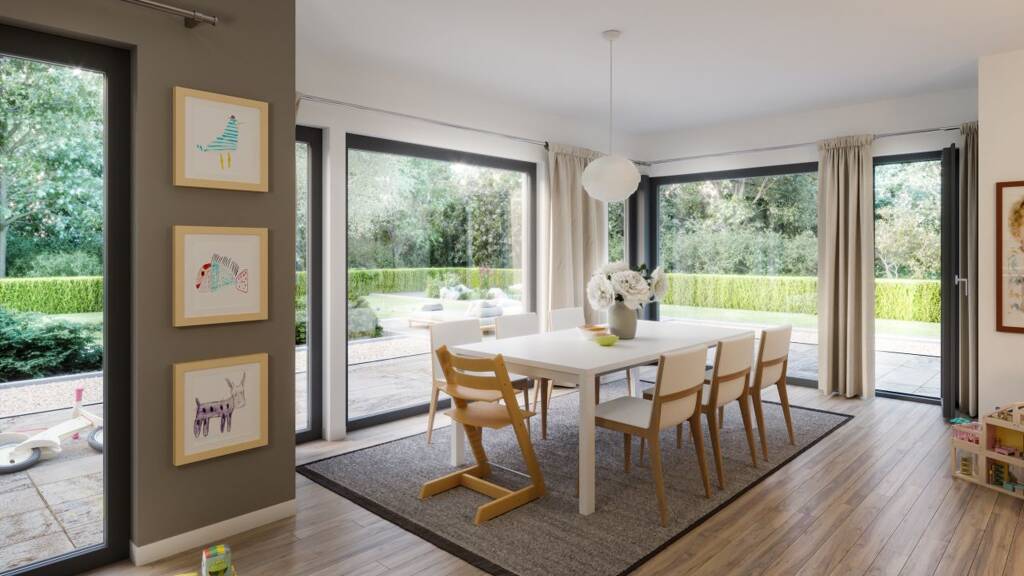 Raus aus der Miete. Rein ins eigene Heim. Warum solltest du deinem Vermieter seine Immobilien-Wertanlage abbezahlen? Sieh dir das SUNSHINE 144 an. Es ist wie gemacht für euch: Hier könnt ihr gemeinsam kochen, essen und abends einen Film streamen. Die Alternative: Rückzug! Ins separate Zimmer, ran an die Konsole und ungestört zocken. Es ist so ein geniales Gefühl, wenn man die hart verdiente Kohle in die eigenen vier Wände steckt und genau weiß, dass einem das Haus bald schon gehören wird. Niedrige Zinsen, staatliche Förderung, das Haus von Living Haus: Die Zeit ist reif. Jetzt. Hol dir DEIN ZUHAUSE.