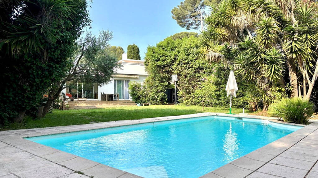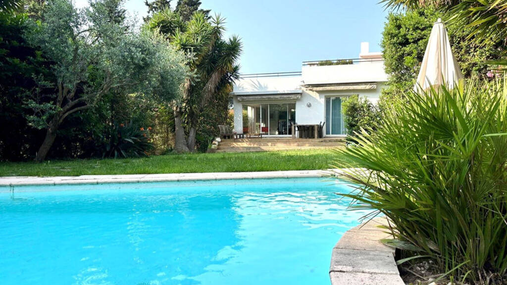 Cap d''Antibes, an authentic Californian-style villa with 4 main rooms and a flat roof dating from the 1960's, offering approximately 140 m2 of living space.