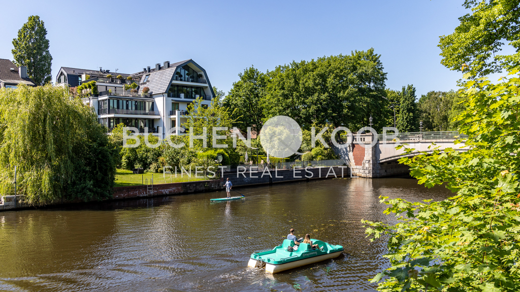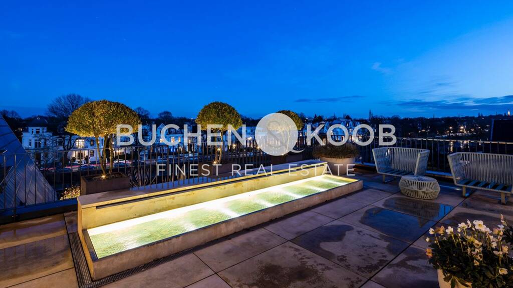 Luxuriöses Penthouse über zwei Etagen | Einmalige Blickachsen über die angrenzenden Stadtteile | Besonders geschmackvolle, anspruchsvolle Ausstattung | Begehrte Lage direkt am Alsterlauf | Hochwertige Dielen-/Limestoneböden | Exklusive Einbauküche mit allen technischen Geräten | Zweite Wirtschaftsküche(Bulthaup) mit Speiseaufzug | Bis zu 4 Schlafzimmer | 2 Badezimmer | 2 Gäste-WC's | Dampf-Sauna | Mehrere HWR´s | Geschmackvolle Einbauten | 2 Kamine | BUS-System | SONOS-Musik-System | Alarm (3-fach-Sicherung) | Zeitlose Fassade mit Natursteinelementen | Elektrischer Sonnenschutz | Große Dachterrasse und 5 Balkone | Beleuchtetes Wasserbassin und Wärmestrahler auf der Terrasse | Fahrstuhl direkt ins Penthouse | 3 Tiefgaragen-Stellplätze | 2 Kellerräume