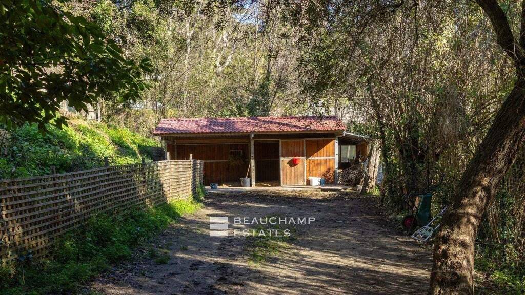 Das Anwesen verfügt über ein großes 35×10 m langes Schwimmbecken mit einer Insel sowie einen Fluss, der von einer Quelle gespeist wird.