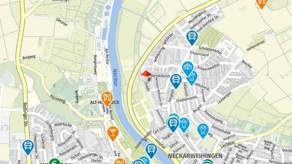 Die ruhige, grüne Umgebung bietet eine perfekte Balance zwischen urbanem Leben und erholsamer Natur. Das Haus befindet sich in keiner Durchgangsstraße und somit in absoluten ruhigen Umgebung. In unmittelbarer Nähe finden Sie malerische Spazierwege entlang des Neckars sowie zahlreiche Freizeitmöglichkeiten.