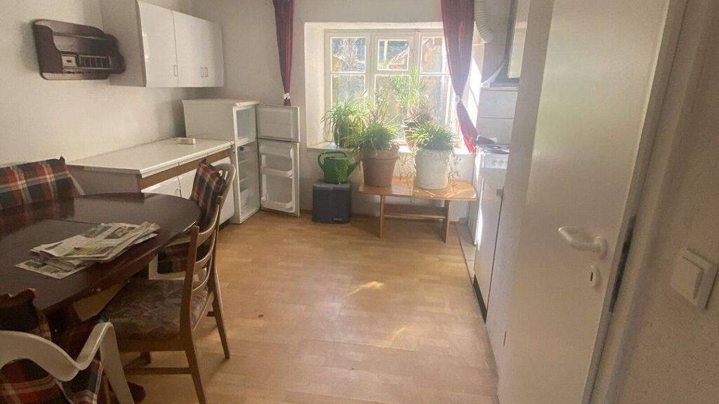 Im Erdgeschoss befindet sich ein Bad , die Küche und ein Zimmer.