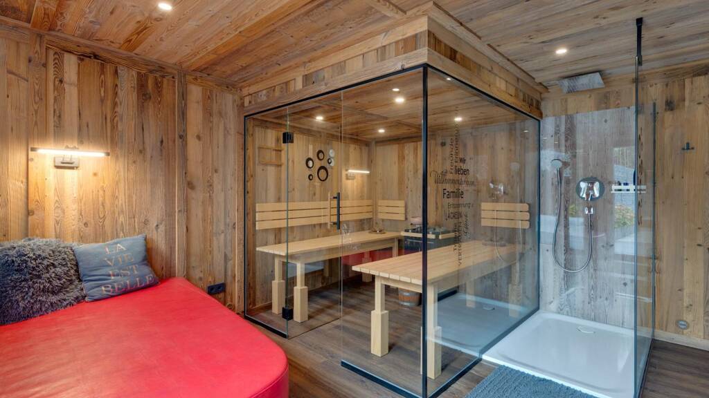 . Tiroler Altholz-Sauna mit exklusivem Wellnessbereich und Outdoor-Liegebereich
