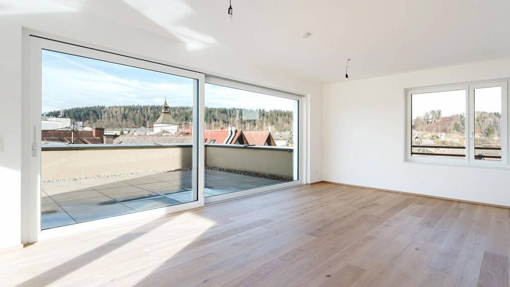 Ein echtes Highlight der Anlage stellen die Penthouse-Wohnungen dar, die neben geräumigen Loggien teilweise auch über begrünte Dachgärten und Dachterrassen verfügen. Ein herrlicher Ausblick über die Dächer von Vöcklabruck wird geboten!