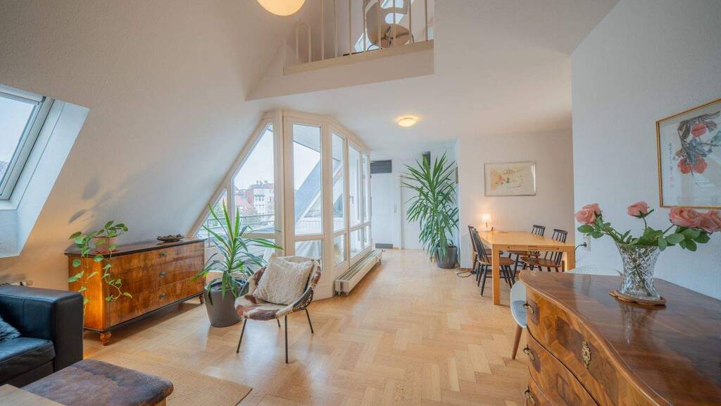 Schon beim Eintreten entsteht ein spürbar angenehmes Wohngefühl. Hohe Decken, ein klar strukturierter Grundriss und großzügige Fensterflächen sorgen für eine helle, offene Atmosphäre. Bodentiefe Fenster sowie zusätzliche Dachfenster lassen viel Tageslicht in die Räume und verleihen der Wohnung eine gewisse Leichtigkeit. Die Raumaufteilung ist funktional und gleichzeitig wohnlich - ideal für ein urbanes Paar, anspruchsvolle Singles oder auch für ein stilvolles Homeoffice-Konzept.