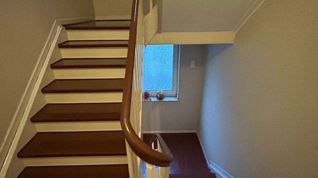 Die Wohnräume sind mit einem pflegeleichten Laminat Boden ausgelegt, der die Räume wärmer wirken lässt und die Türelemente sind passend dazu in Buche gehalten.