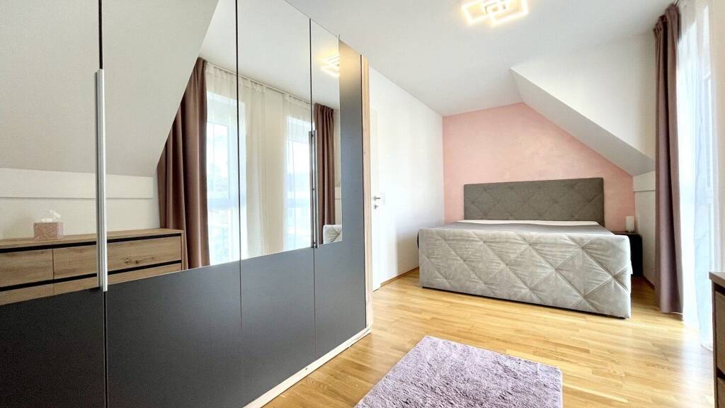 Der offene Wohn- und Essbereich ist mit großzügigen Fensterfronten und gepflegten Parkettböden ausgestattet. Die Fensterfronten sorgen für eine unverwechselbar lichtdurchflutete und wohlige Raumatmosphäre, sowie einen attraktiven Blick ins Grüne. Die elegante Küche lädt Sie förmlich zum Zubereiten von Köstlichkeiten ein. Edle Fronten und Marken-Küchengeräte erleichtern Ihnen den Alltag: ein Geschirrspüler, ein übergroßer Induktionsherd und ein Backofen sind hier vorhanden. Im modernen Badezimmer wartet eine Badewanne, eine Dusche und ein Waschtisch mit Spiegelkasten auf Sie. Fenster vorhanden. Sämtliche Zimmer sind getrennt begehbar.