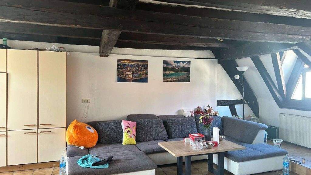 Im 2. OG befinden sich das Wohnzimmer mit Sichtgebälk und die Küche mit Esszimmer.