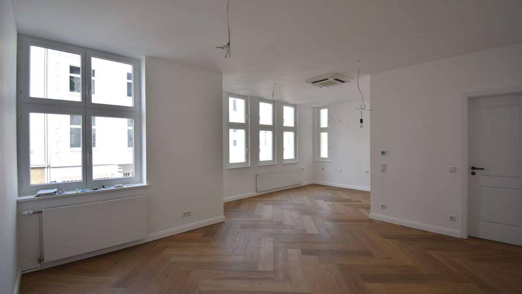 In begehrter Lage von Düsseldorf-Oberkassel vereint diese hochwertig neu geschaffene Wohnung im ersten Obergeschoss stilvollen Altbaucharme mit modernem Wohnkomfort. Die ehemalige Gewerbeeinheit wurde mit viel Gespür für Ästhetik und Qualität in ein elegantes Wohnkonzept transformiert. Beim Eintreten eröffnet sich unmittelbar der großzügige, offen gestaltete Wohn- und Essbereich mit integrierter Küche - das Herzstück der Wohnung. Hochwertiger Fischgrät-Parkett, glatt verspachtelte weiße Wände, klassische Kassettentüren sowie die beeindruckende Deckenhöhe und große Fensterflächen schaffen ein lichtdurchflutetes, repräsentatives Ambiente. Das stilvolle Badezimmer überzeugt mit großformatigen Marmorfliesen, großzügiger Dusche und edlen Armaturen in Messingoptik, ergänzt durch einen modernen Waschtischunterschrank. Ein Schlafzimmer sowie die vollständige Klimatisierung aller Räume runden den hohen Wohnkomfort ab.