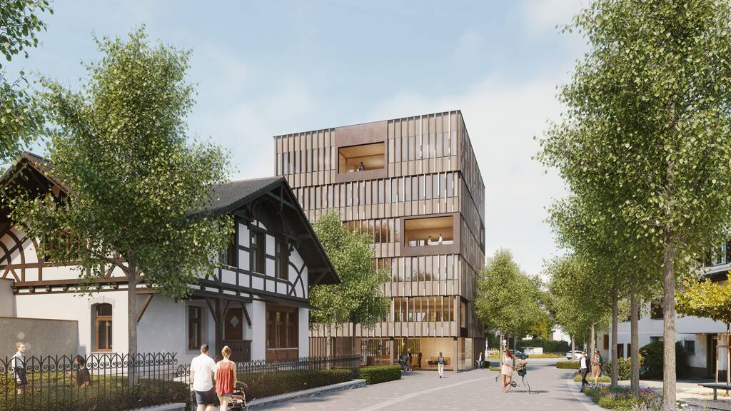 Am Eingang zur historischen Innenstadt entsteht ein Quartier, welches die Besucher:innen städtebaulich und architektonisch willkommen heißt. Neben dem neuen Rathaus für die Stadt Hohenems werden vier weitere neue Gebäude mit einem straßenseitigen gewerblichen Fokus und einem Fokus auf Wohnnutzung dem Areal inneliegend gebaut. Der historische Bestandskomplex der Villa Rosenthal wird denkmalschutzgerecht saniert und öffnet sich mit der Ansiedlung des künftigen "Literaturhaus Vorarlberg" nun für die breite Öffentlichkeit. Neben dem Literaturhaus werden unter anderem ein Café, ein Gewerbe und einige Dienstleister Platz in der generalsanierten Rosenthal Villa finden. Des weiteren wird rückwärtig zur Villa eine öffentliche Parkanlage entstehen, in welcher der Erhalt des wertvollen Baumbestandes großteils gesichert werden kann. Attraktiv fußläufige Durchwegungen und Plätze zum Verweilen und Erholen prägen das Areal.