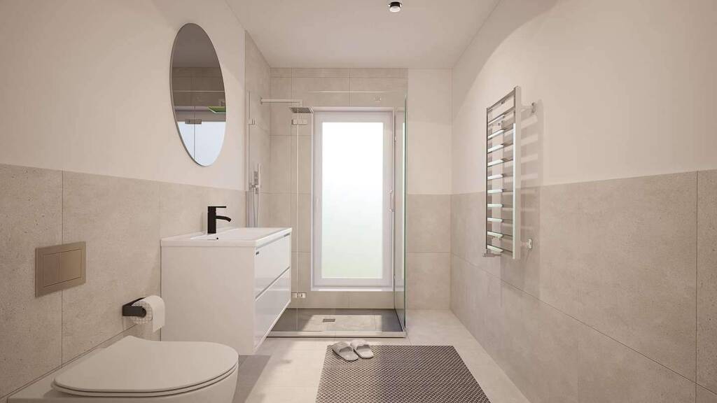 HINWEIS: Die gezeigten Darstellungen sind unverbindliche computergenerierte Visualisierungen eines noch nicht vollständig fertiggestellten Bauvorhabens. Sie dienen ausschließlich der Illustration des geplanten Endzustands. Der tatsächliche Ausführungszustand kann insbesondere hinsichtlich Gestaltung, Materialien, Farbgebung, Ausstattung sowie baulicher Details vom dargestellten Konzept abweichen.
