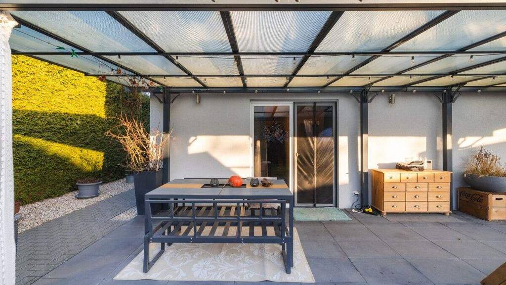 Von hier aus geht es direkt auf die überdachte Terrasse - ein echtes Plus. Ob Frühstück im Freien, entspannte Nachmittage oder lange Sommerabende: Dieser Platz funktioniert fast bei jedem Wetter. Der angrenzende Garten ist pflegeleicht, gut nutzbar und bietet Raum zum Spielen, Toben oder einfach zum Abschalten, ohne das dieser zur Last wird.