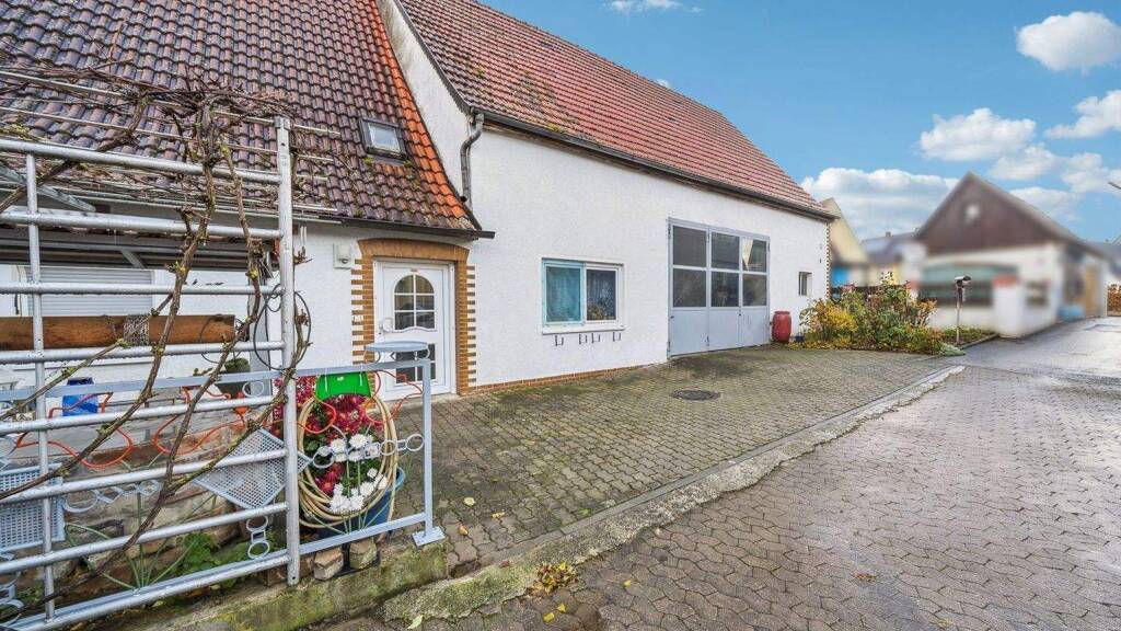 Ein weiteres Highlight für alle Autoliebhaber ist die angrenzende ca. 64 m² große Garagenhalle inklusive KFZ-Hebebühne. Hier bietet sich viel Platz für Hobby und Freizeit. Durch einen Nebenraum ist die Garagenhalle direkt vom Haus begehbar.
